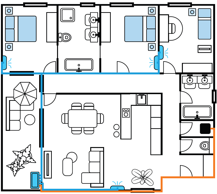 Protože se teplá voda připravuje podle nastaveného plánu (například v noci), může se venkovní jednotka automaticky přepnout do režimu chlazení, jakmile zapnete klimatizaci. Užijte si příjemnou teplotu až ve čtyřech místnostech kdykoli během roku.