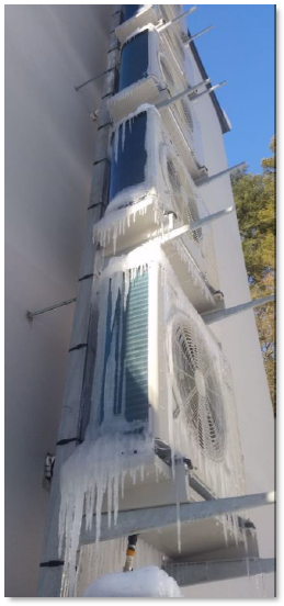 U klimatizací využívaných k vytápění je nutné brát v úvahu zimní provoz. Venkovní jednotka při topení produkuje značné množství kondenzátu, který musí bezpečně odtékat.